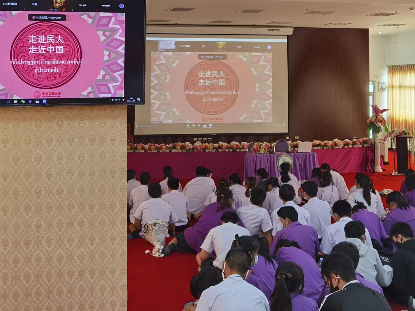 报告厅通过Zoom平台直播,参加了2021年留学中国(泰国站)线上宣讲会。